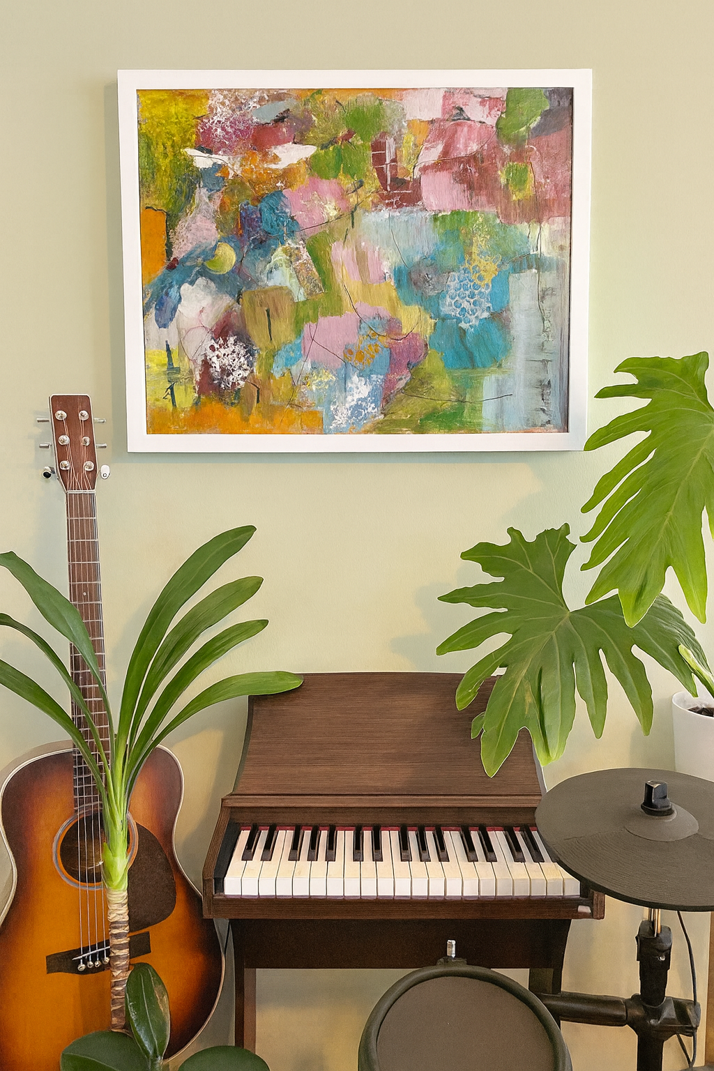 Fractured” is a vibrant 20” x 16” framed acrylic abstract painting that reflects the emotions we sometimes carry on fractured days. Bold splashes of color, layered textures, and intersecting lines come together to create a sense of both movement and disruption. The lively mix of pinks, blues, greens, and earthy tones captures the tension between chaos and calm, revealing the beauty within brokenness and the quiet harmony that can emerge from it.